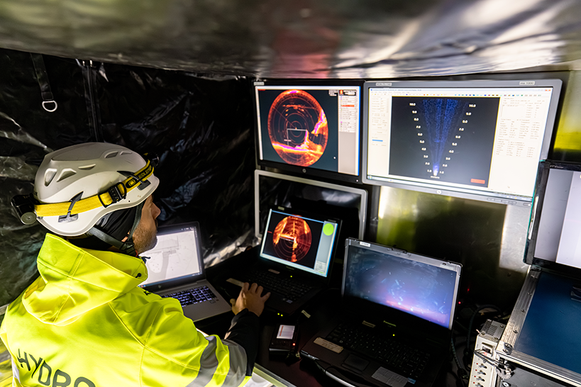 Les contraintes d’accès et sécuritaires ont imposé deux approches logistiques distinctes : l’héliportage du poste de commande directement sur le couronnement du Vieux Emosson, et une inspection embarquée depuis un bateau pour Emosson. Cette double stratégie démontre la capacité d’HYDRO à adapter ses moyens avec agilité, en déployant rapidement des solutions sur mesure grâce à une préparation en amont réalisée main dans la main avec l’exploitant.